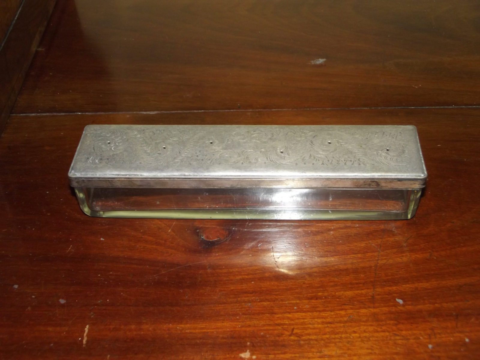Vasetti interni in vetro con coperchi in Sheffield e specchio sul fondo.
