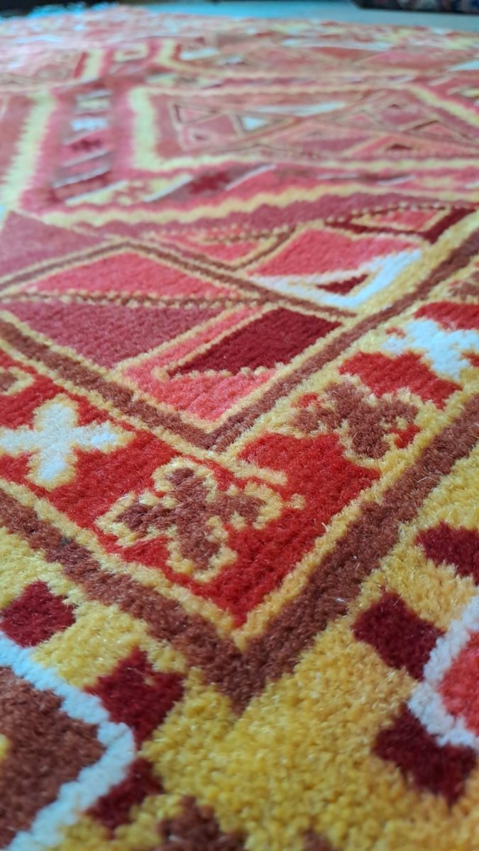 Particolare tappeto anatolico dai colori sgargianti, prodotto in Anatolia (Turchia).